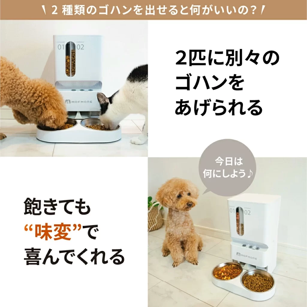 MOFMORE モフモア 自動給餌器(2WAY電源&“2種類のごはん”が出せる!)